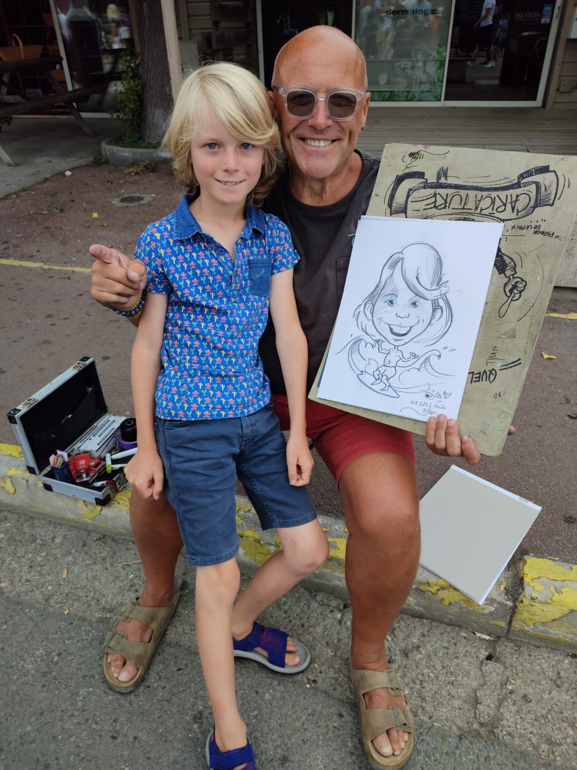 In de zomer vind je Machin terug aan de woeste maar betoverende stranden van de Medoc. Montalivet is een betoverend surfdorpje op 90 km van Bordeaux. Ondertussen is Machin daar een stuk van het straatmeubilair geworden en tekent hij daar dagelijks op straat, als echte straatartiest, karikaturen van nietsvermoedende toeristen. Op een kleine 10 minuutjes is het geklonken, en krijg je, behalve een grappig en zelf-relativerende karikatuur (nooit gemeen) een portie geluk en een mooie herinnering mee.